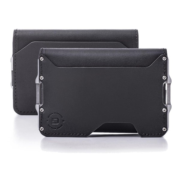 Dango D03 Dapper Bifold EDC Wallet - Made in USA - Genuine Leather, Slim, Minimalist, Metal, RFID Blocking, Jet Black/Satin Silver, Men's Slim Wallet