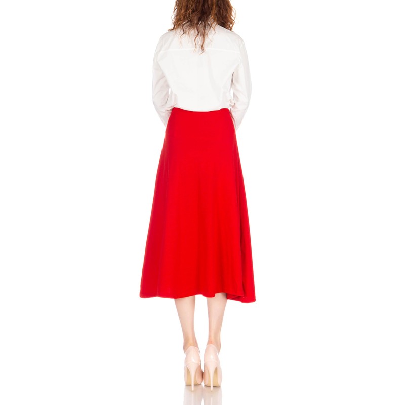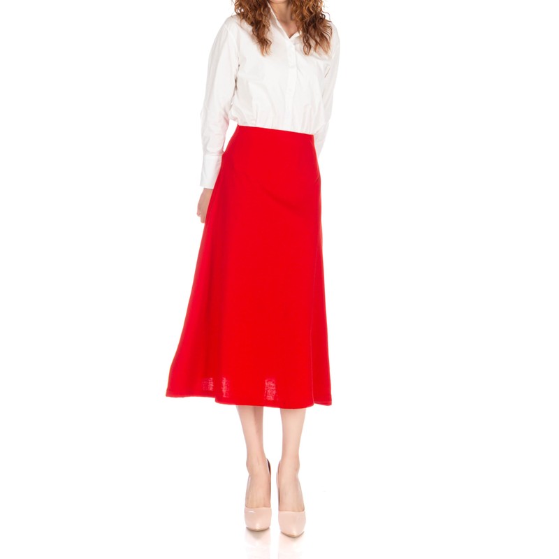 Dani's Choice Elastic Waist A-line Flared Long Skirt (M, Red)