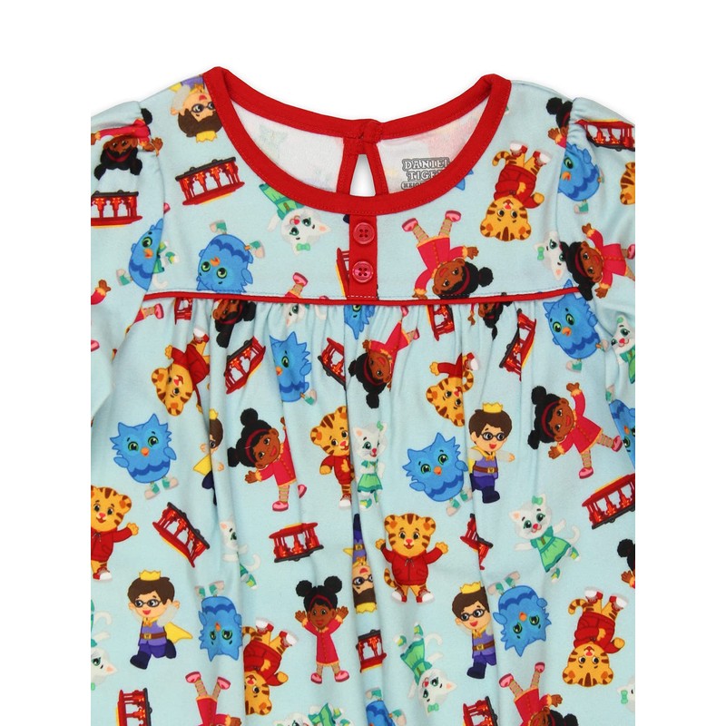 - FEATURING HER FAVORITE CHARACTERS - These super cute pajamas are sure to bring a smile to any girl's face. Make your little one's night with these extra soft nightgowns. This sleepwear set features all her favorite Daniel Tiger's Neighborhood characters: Miss Elena, Prince Wednesday, Katerina Kittycat, O the Owl and Daniel Tiger! It's perfect to play or sleep in!