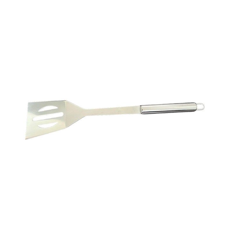 With the right tool, sizzling is even more fun and gives safety. The spatula and two-pronged fork have a hanging device at the end of the handle.