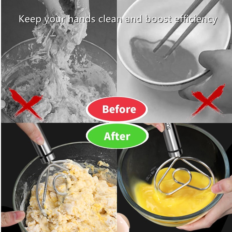 • Efficient Mixing: The Danish dough whisk’s heart-shaped design boosts mixing efficiency, perfect for bread whisk tasks, ensuring dough blends faster and more evenly without bulky equipment
