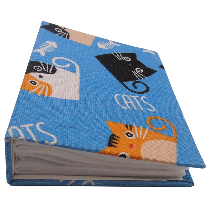 Dankeler Small Photo Album for Kids, 100 Pockets 4x6 Bookshelf Baby Picture Album, Slip-in Linen Cover Photo Book for Family(Kitty)