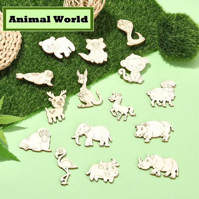 - š¦ćQuantityćPackage comes with totally 100 pieces animal theme unfinished wooden cutouts in mixed style. Enough quantity and styles for your need.