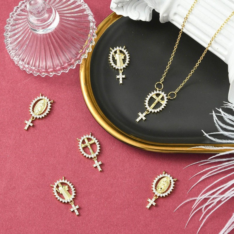 DanLingJewelry 6Pcs Virgin Mary Jesus Cubic Zirconia Connector Charms with Rosary Cross Charms Oval Links Connectors for DIY Jewelry Making, Non-Precious Metal, No Gemstone