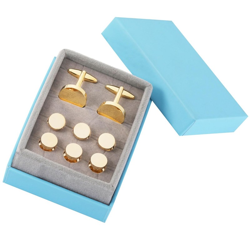 - CUFFLINKS AND SHIRT STUDS:1 pair cufflinks for men and 6 tuxedo shirt studs. Black blue Gold Silver will never go out of fashion. Can add elegance to your shirt.