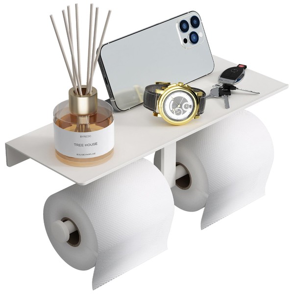 Danpoo Bathroom Toilet Paper Holder with Shelf, Wall Mount, Double Roll, White