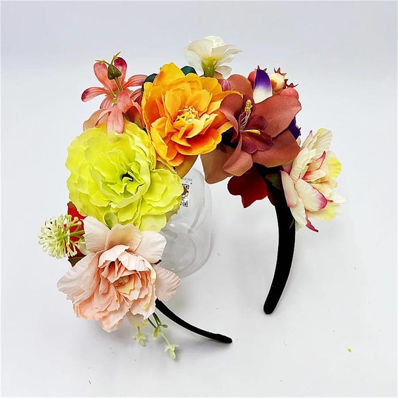 DANRENPANG Fashion Personality Boho Flower Crowns Headband For Women Faux Floral Hairband Wedding Art Photography Hair Accessories (4#, 14CM+12CM)