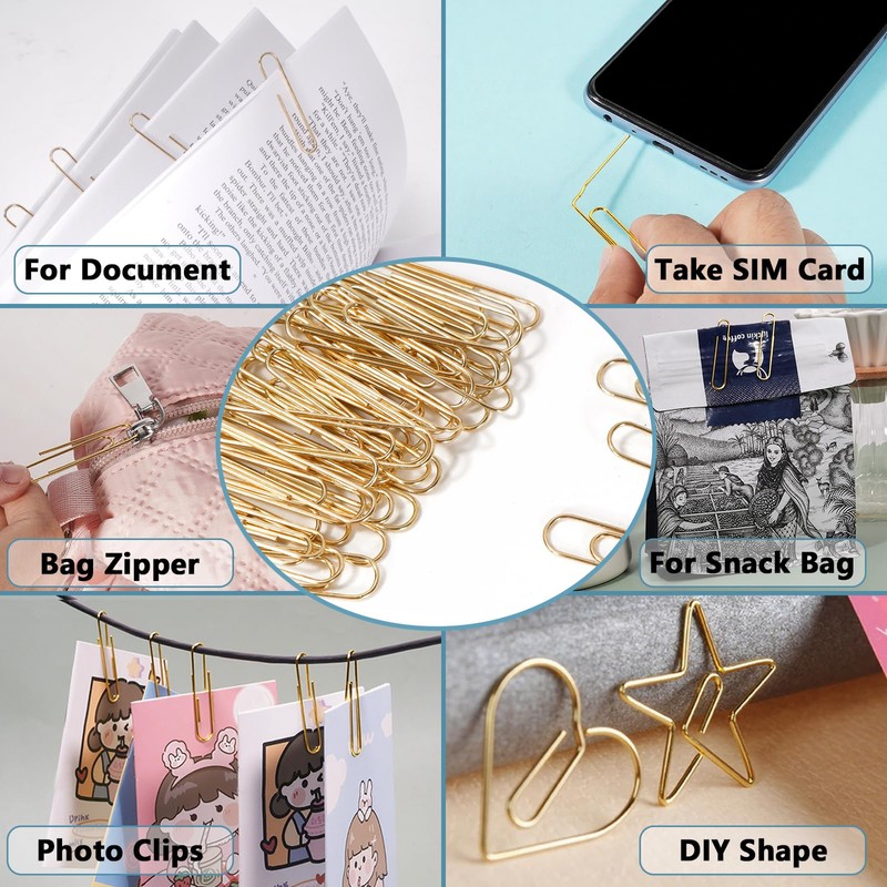- 【MULTI-PURPOSE】These large paper clips are not just for documents. They can also be used as unique DIY bookmarks, photo album clips, business card holders, envelope seals, or even craft temporary hairpins, food bag clips, and necklace charms! Great for offices, schools, libraries, hospitals, and home use.