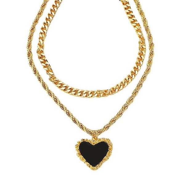 Danshinbow Double Layer Twists Necklace Exaggerated Black Gold Love Heart Black Diamond Jewelry for Women and Girls Metal, Metal