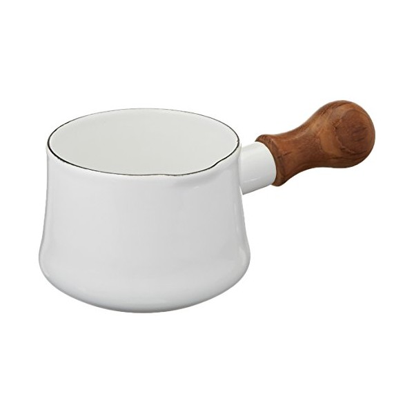 The white butter warmer bears an ergonomic teak handle that maintains a comfortable temperature as the pot heats. Crafted with three coats of enamel in an inviting white hue, the Kobenstyle White Butter Warmer makes for an easy-to-clean, practical kitchenware addition.