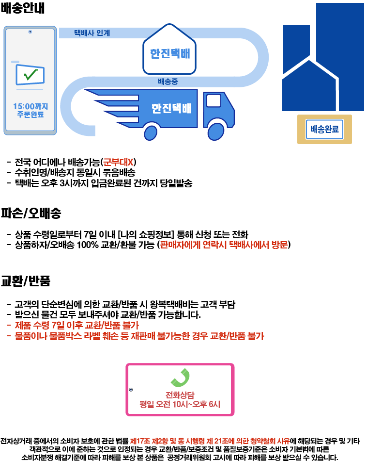 본 제품을 구매하시면 원활한 배송을 위해 꼭 필요한 고객님의 개인정보를 (성함, 주소, 전화번호 등) 택배사 및 제 3업체에서 이용하는 것에 동의하시는 것으로 간주됩니다.