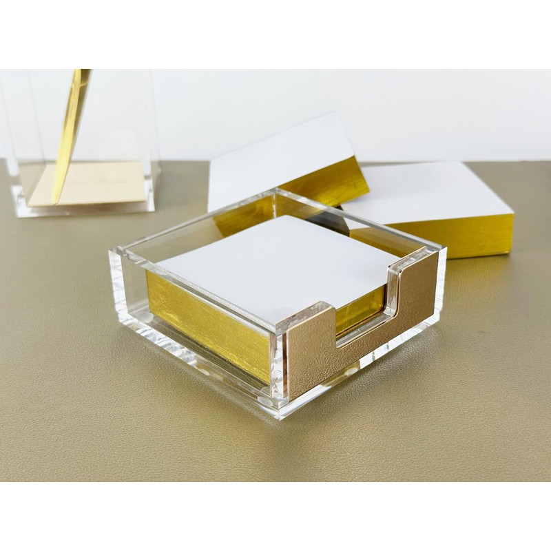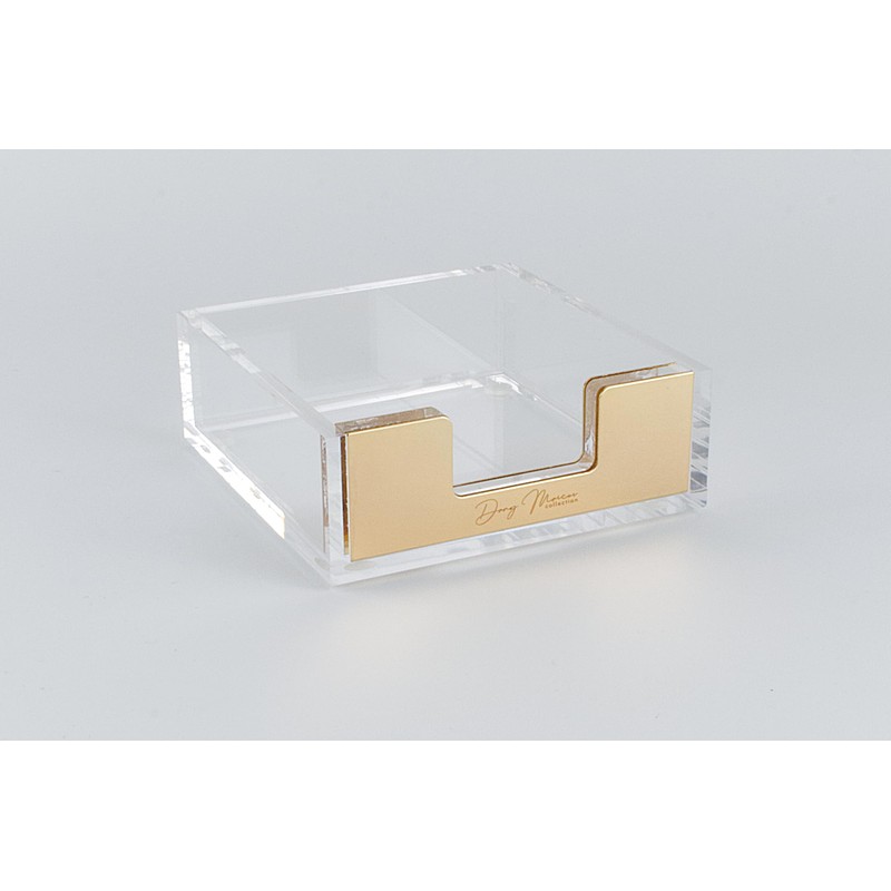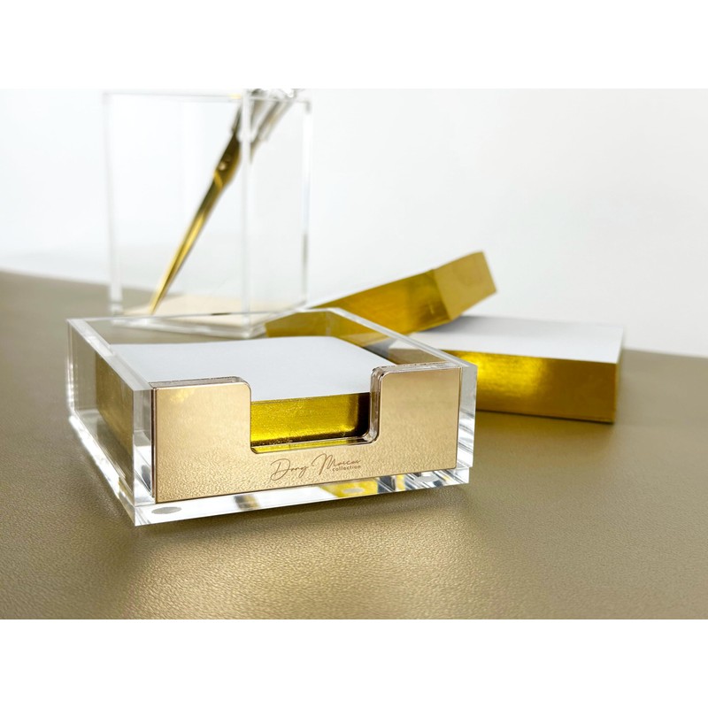 Dany Marcus Elegante Acrylglas-Zettelbox mit Goldakzenten, Notizzettelhalter + Ein Notizblock