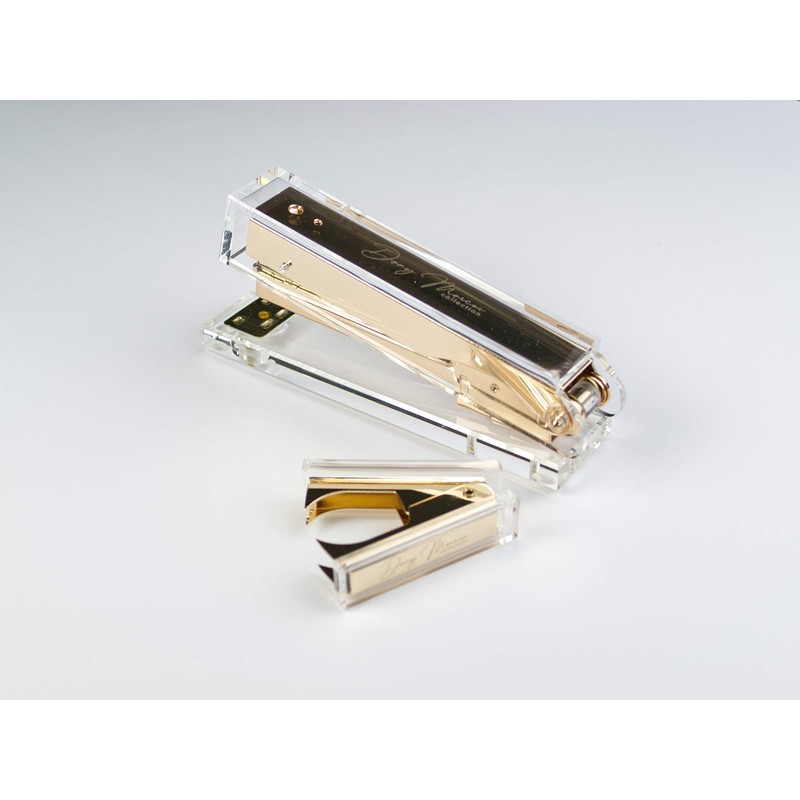 Dany Marcus Stapler + Staple Remover Set, Transparent Acrylic with Metal in Gold, Stapler for Staples 24/6, Staples 25 Sheets