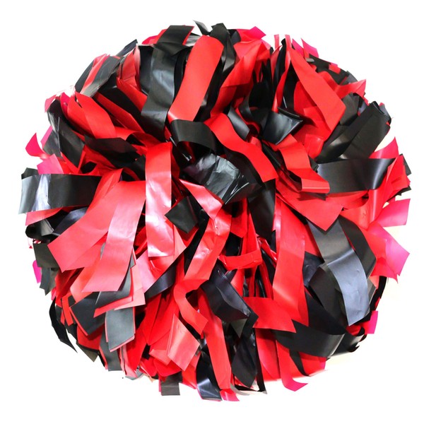 Danzcue 2 Pack 6 Inches Plastic Cheerleading Pom Pom with Baton Handle (Black-Red, One Size)