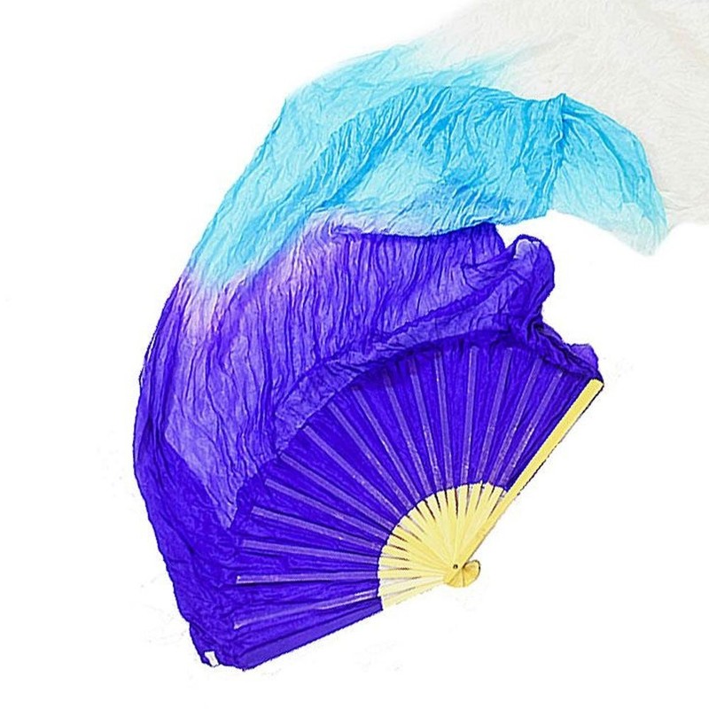 Danzcue Silk Dance Fan, White-Light Blue-Light Purple Left Hand