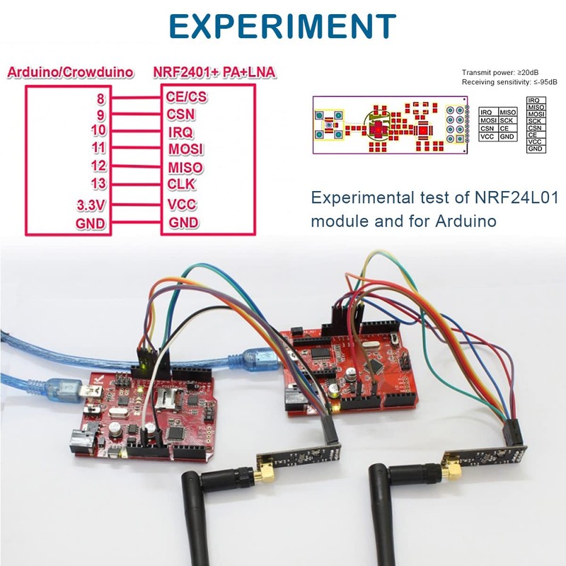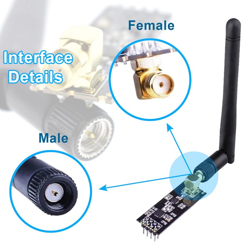 - Package includes: You will get 2 x NRF24L01+PA+LNA Wireless Transceiver RF Transceiver Module, 2 x SMA Antenna 2.4G 1100m, 2 x NRF24L01 Wireless Module Breakout Adapter, 1 x 16Pin Female to Male Cable