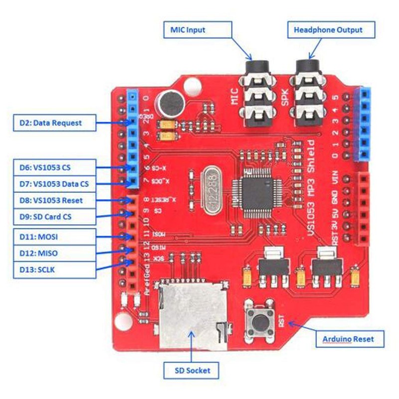DAOKI VS1053 VS1053B TF Card Stereo Audio MP3 Player Record Decode Development Board Module for Arduino with 3.5mm Audio Jack Cable