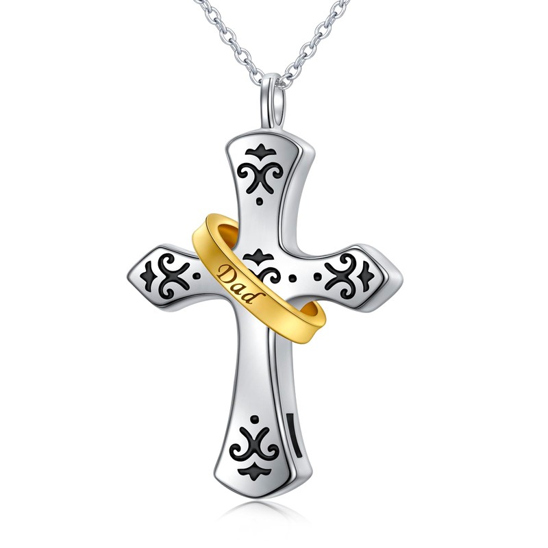 DAOSHANG Cross Urn Necklace for Dad Cremation Jewelry for Ashes, Sterling Silver Cross Urn Necklaces for Ashes, Cremation Keepsakes for Ashes for Men Women, Sterling Silver, No Gemstone