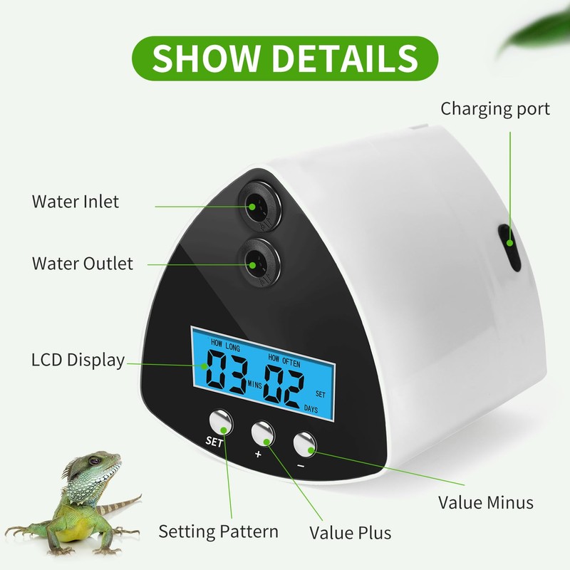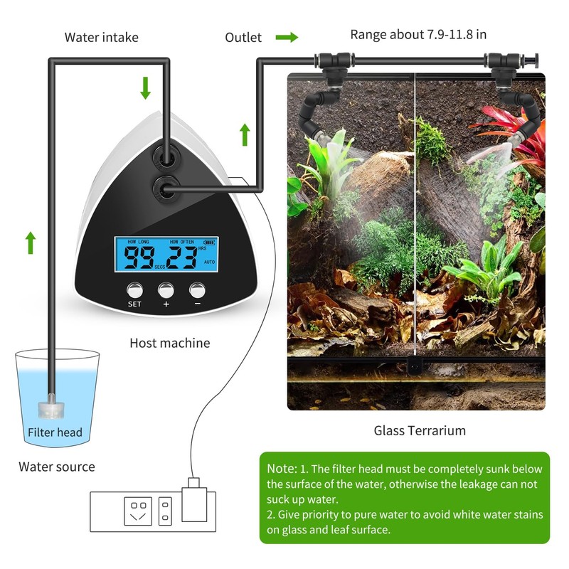 • 【Wide Range】 Suitable for all kinds of reptiles and amphibians, such as snakes, turtles, chameleons, frogs, etc.Provide a rainforest living environment for pets. Also suitable for indoor plants, automatically water the plants and keep the aquarium environment moist.