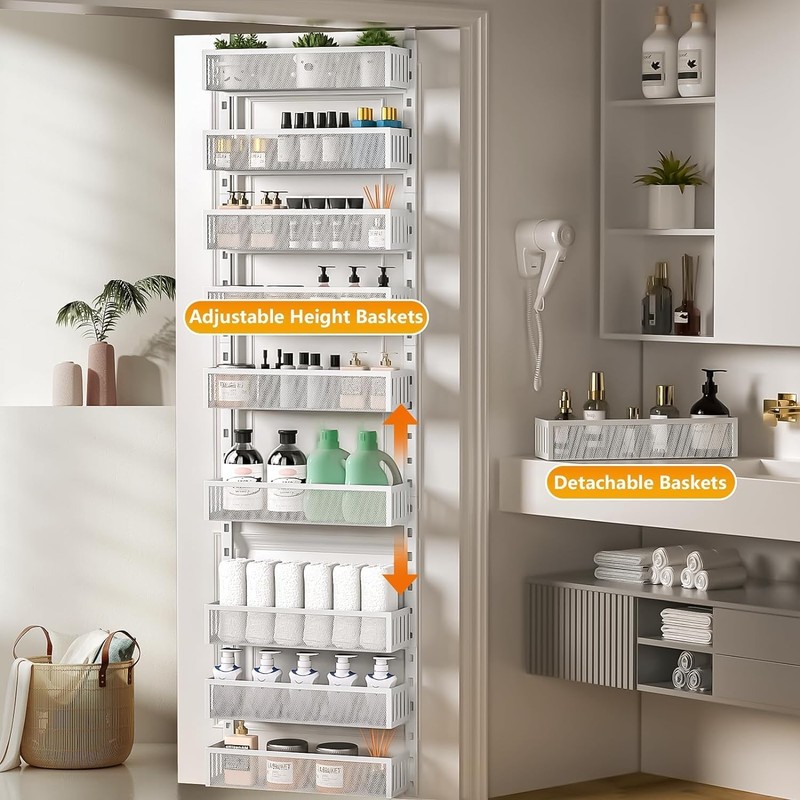 - Streamline Your Storage with This Over the Door Organizer: Say goodbye to cluttered drawers and cabinets with our versatile over the door organizer. This hanging pantry organizer is designed to meet all your needs, from cosmetics and clothes to spices, cans, towels, and more. Whether you place it in the pantry, kitchen, bathroom, bedroom, laundry room, or nursery, its function are endless.
