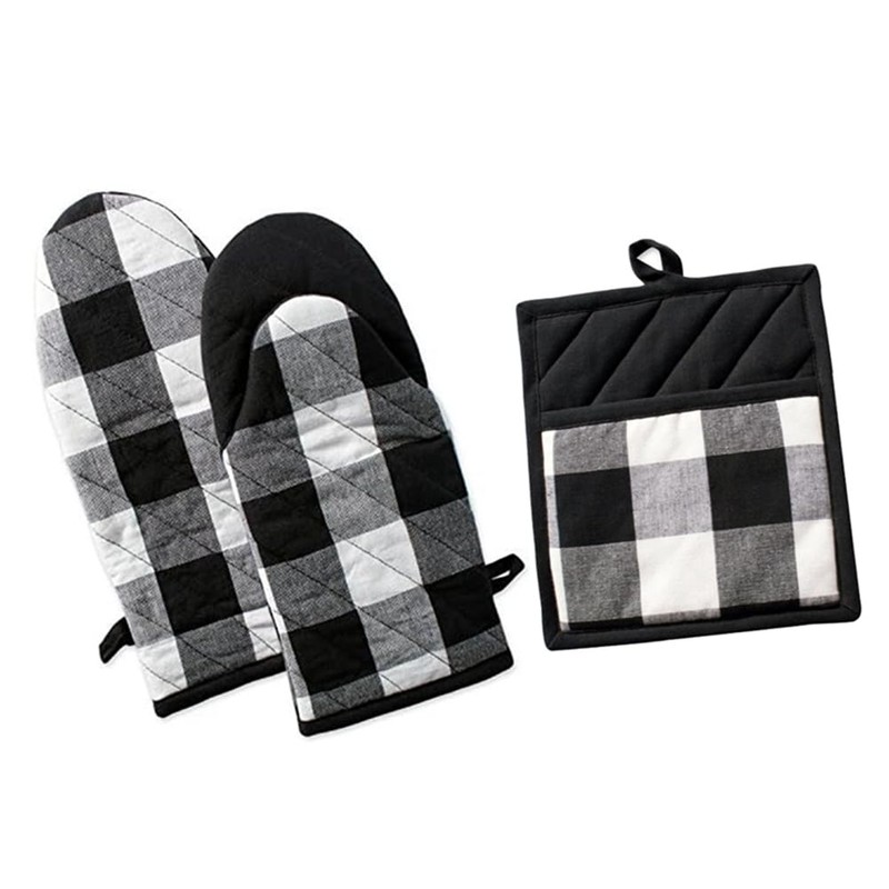 Daowwui -Check Classic Farmhouse Kitchen Set Insulation Pad Oven Mitt and Insulation Pad Black & White