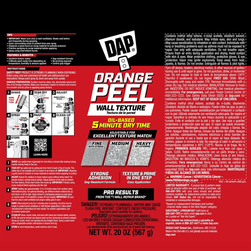 DAP 7079850016 Spray Orange Peel Oil Based Wall Texture Quick Repair, White