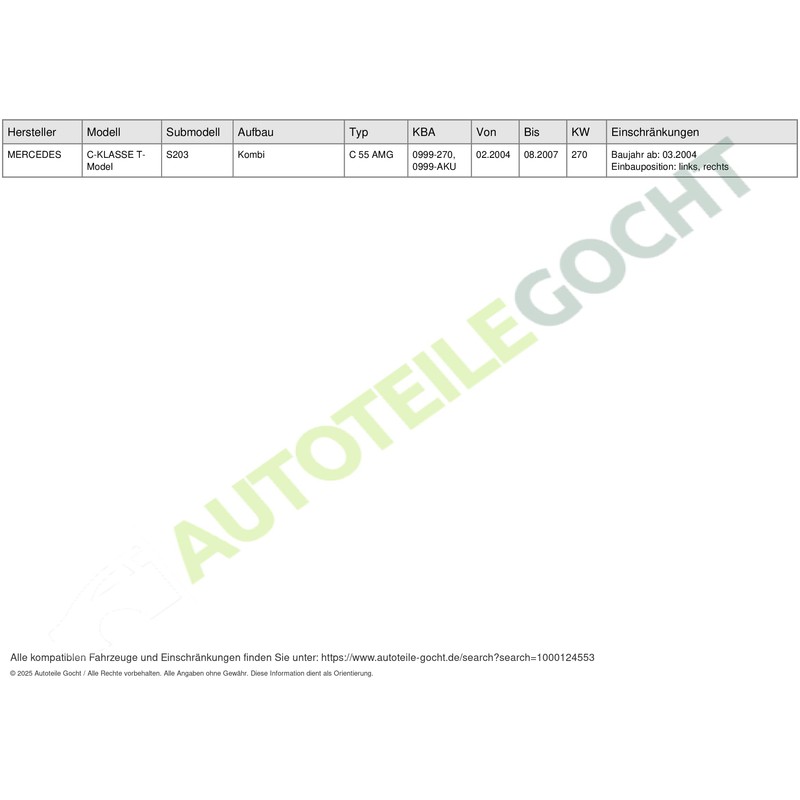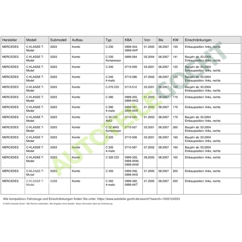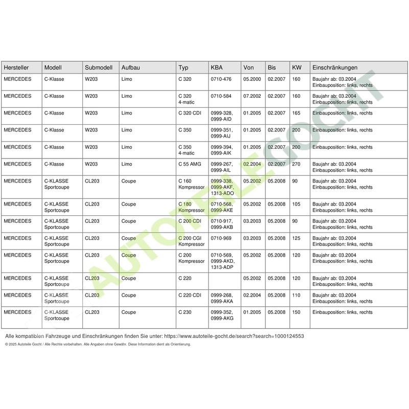 - Mounting side: left, Bulb type: HB4, Characters: E13; Model: (W203), '5.2000' .2007