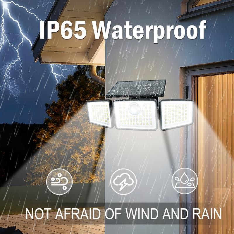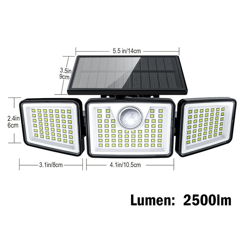 Daphino Solar Outdoor Lights 2500LM Security Lights, 3 Heads Dimmable SpotLights with 3 Modes, IP65 Waterproof:_3 Packs