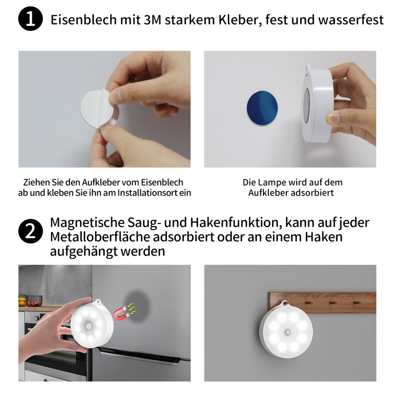 • eit VerbreitetDie tragbare dieser Puck-Leuchten mit Bewegungssensor macht sie ideal, um berall dort zus?tzliches Licht hinzuzufgen, wo Sie es ben?tigen, von Kchen und Schlafzimmern bis hin zu Treppen, Kellern, Dachb?den, Garagen, Schr?nken, Schubladen, und mehr.