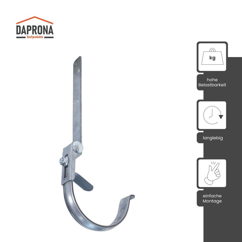 DAPRONA Adjustable Gutter Bracket, Gutter Bracket Silver RG 250 for semi-Circular Gutter, Adjustable in Height and Pitch, high Corrosion Protection