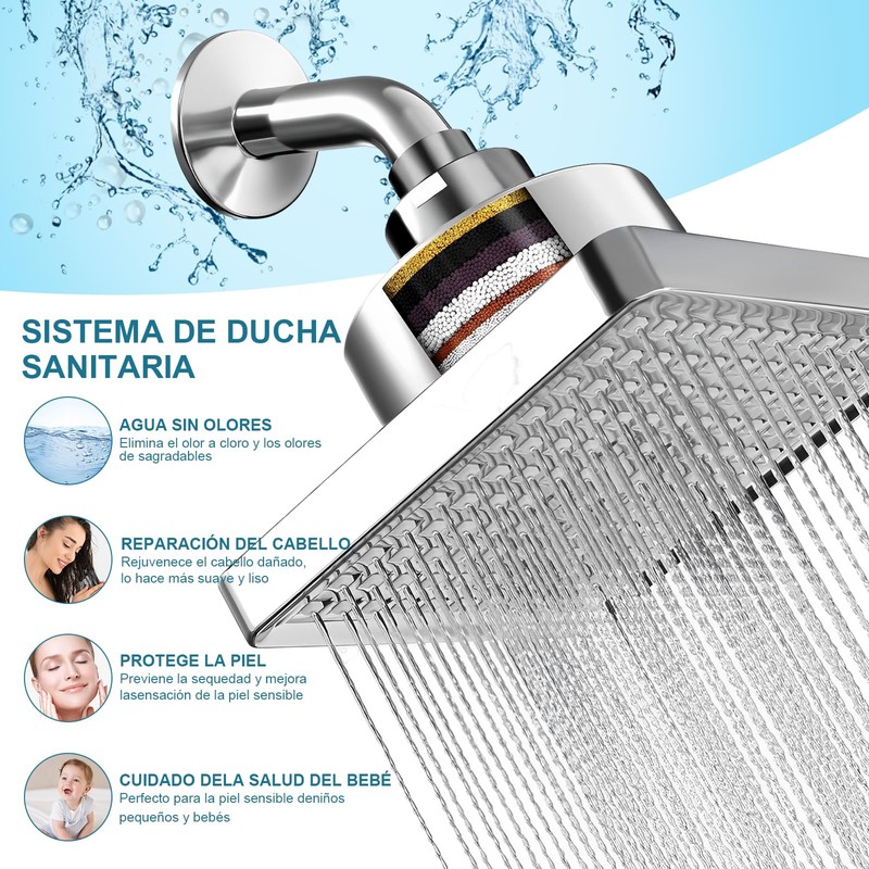 - 🚿FILTRO DE CABEZAL DE DUCHA: El cabezal de ducha tipo lluvia incluye 2 piezas filtro para agua dura que garantiza una purificación óptima del agua. Este filtro reduce eficazmente el cloro, los metales pesados, el óxido, la arena y otros sedimentos, inhibiendo la formación de sarro, algas, hongos y moho. Este cabezal de ducha con filtro le proporciona agua suave y saludable que mantendrá a su familia y a sus hijos felices y sanos.