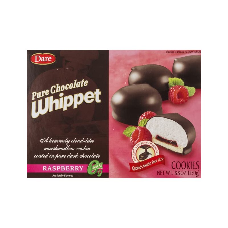 - Dare Whippet Raspberry cookies are a decadent treat made better with real chocolate, no artificial flavors and 0g of trans fat.