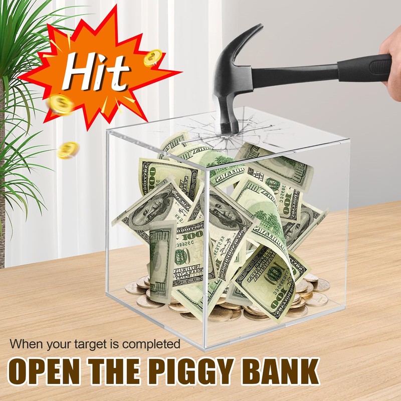- Non Openable Piggy Bank: This non openable clear money box has a narrow deposit opening, but cannot be removed; Not being able to easily take out your savings, and designed to require breaking in, is a safe and fun way to save money, making it easier to save.