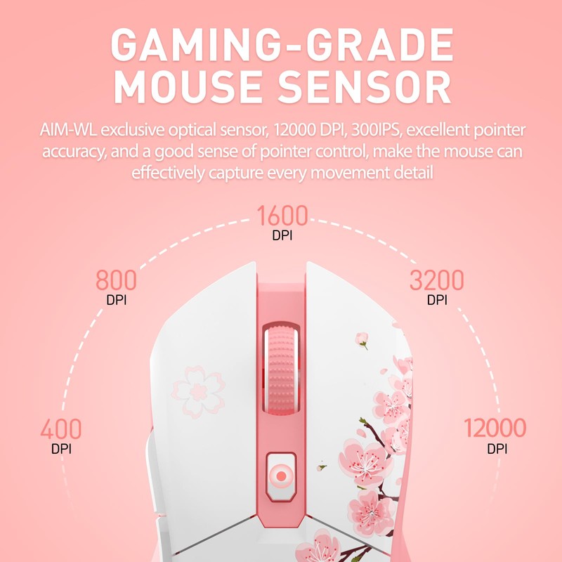 DAREU EM901X Wireless Gaming Mouse, Cherry Blossom/Pink, Wireless, 0.08 oz (2.4 g) / Wired USB Connection, Lightweight 3.0 oz (85 g), Ergonomic, Cute Cherry Blossom, 12,000 DPI with Charging Dock