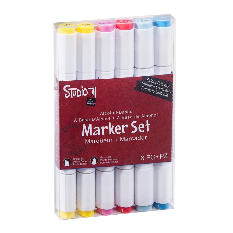 Darice 30038423 Studio 71 Alcohol-Based Marker Set, Bright Primaries, 6 piece, Ink