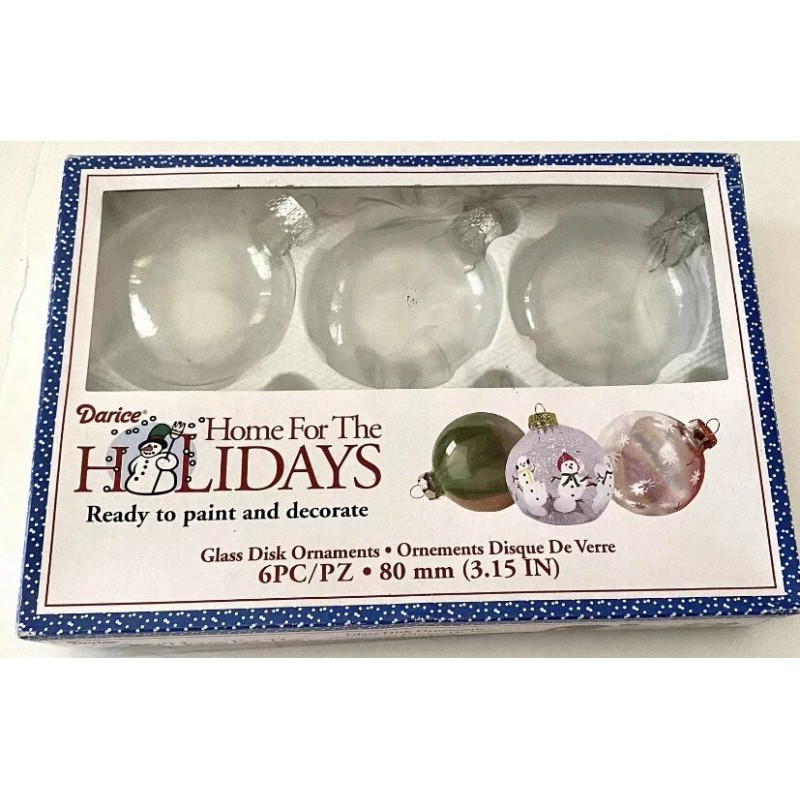 Darice Clear Glass Round Flat Christmas Ornament Set Of 6
