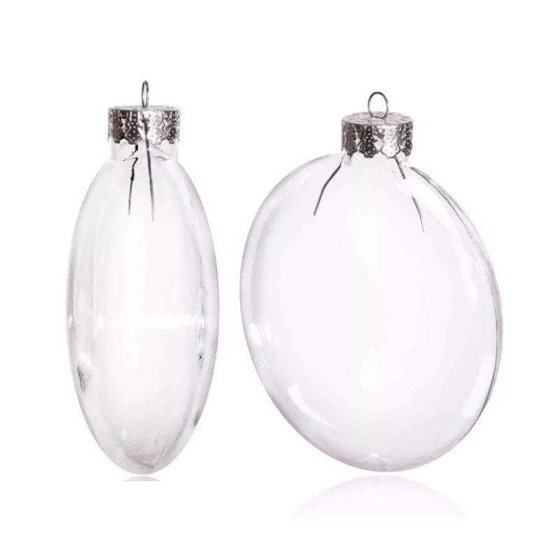 Set of 6 round flat clear glass Christmas ornaments. Can be filled, painted, decorated. Great for hobby, and gifts.
