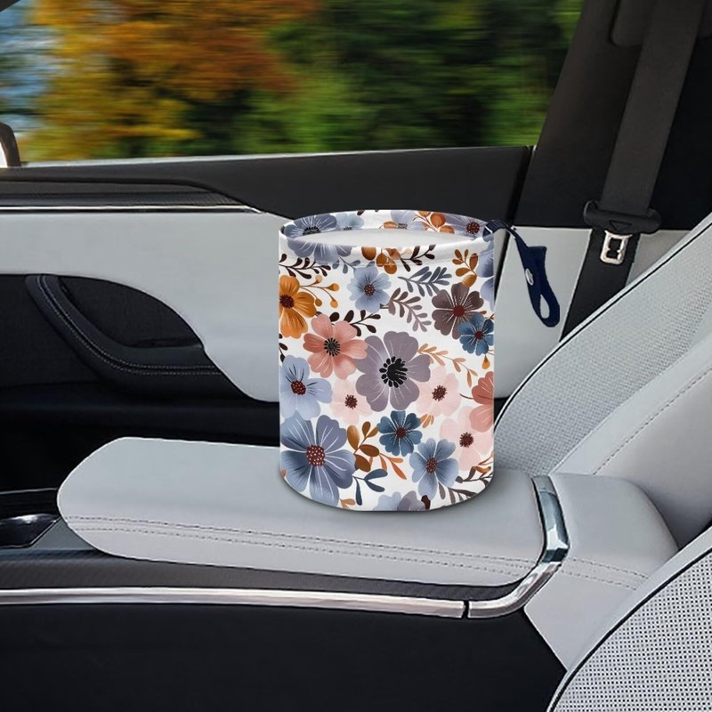 Darisoco Colorful Flower Mini Car Trash Bin with Adjustable Buttons Car Garbage Can Multipurpose Car Storage Bag Collapsible Reusable