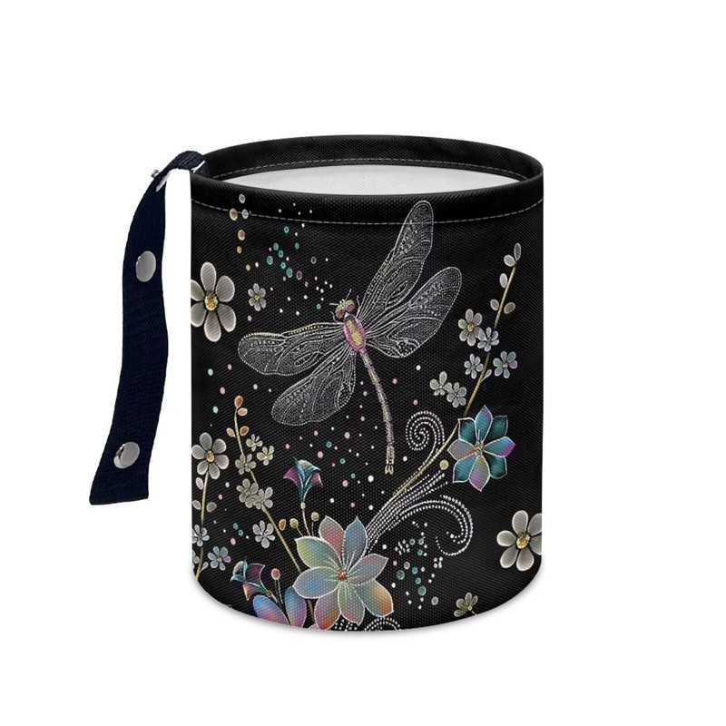 Darisoco Dragonfly Trash Can for Car Car Garbage Can for Back Seat Leak Proof with Adjustable Buttons Car Accessories for Women Interior