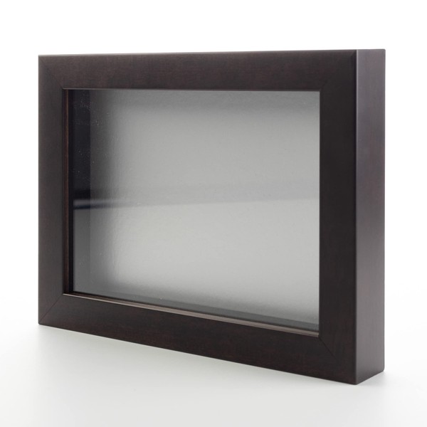 Dark Brown wood shadow box with interior dimensions of 30x30 inches. Includes frame-grade UV-resistant acrylic front and hanging hardware. Featuring an acid-free silver backing to help protect your photos and keepsakes. The usable depth of this shadow box is 3/4". Great for weddings, birthdays, and displaying collectibles.