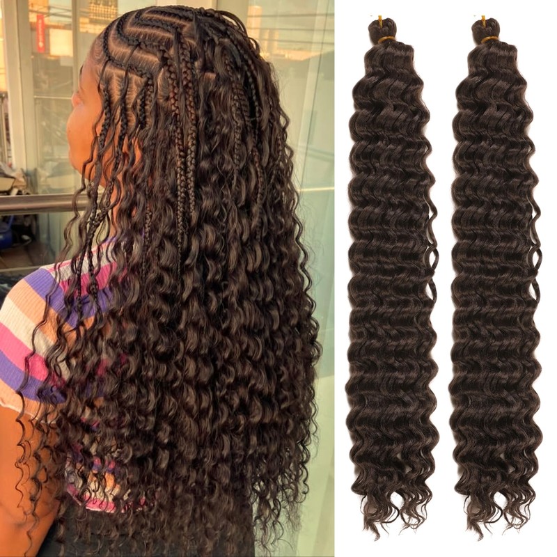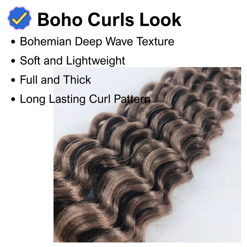 - Dark Brown Deep Wave Boho Hair for Braiding, There are 2 Packs Synthetic Deep Wave Boho Braiding Hair in One Package.