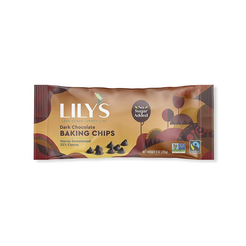 Dark Chocolate Baking Chips by Lily's |Stevia Sweetened, No Added Sugar, Low-Carb, Keto Friendly | 55% Cocoa | Fair Trade, Vegan, Gluten-Free & Non-GMO | 9 ounce, 12-Pack