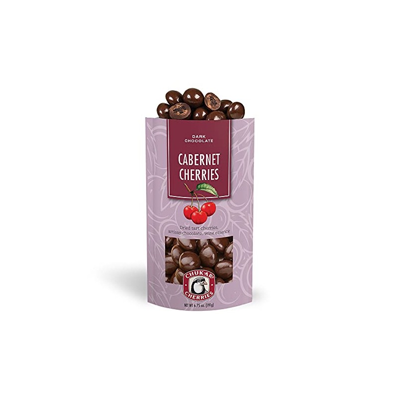 - Dried tart cherries coated in dark chocolate with bold wine essence. Excellent when paired with a Washington red wine.