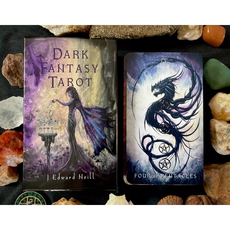 Welcome to Dark Fantasy Tarot. This 78-card deck features original art, keywords, and concepts by artist J Edward Neill. This is J Edward's seventh deck overall, and his third official tarot deck.