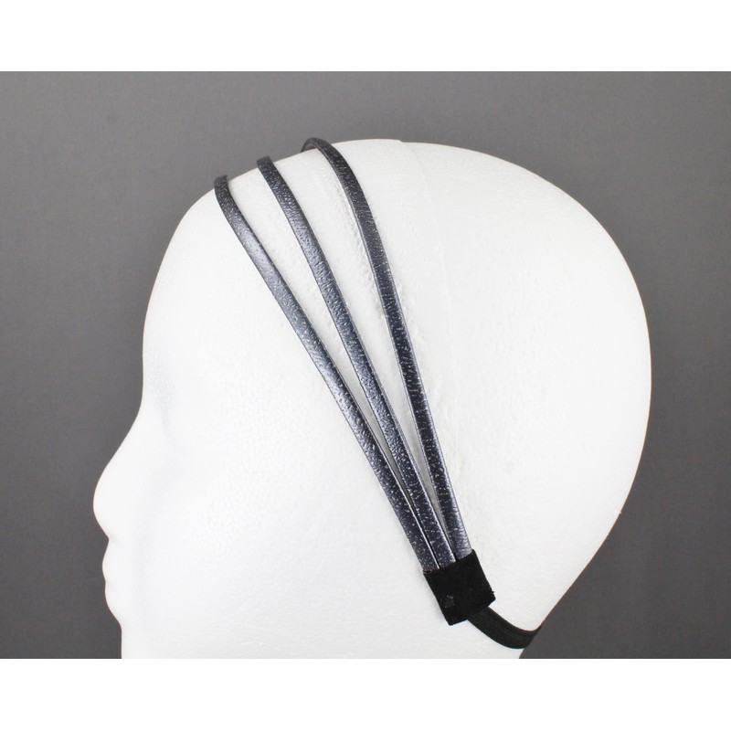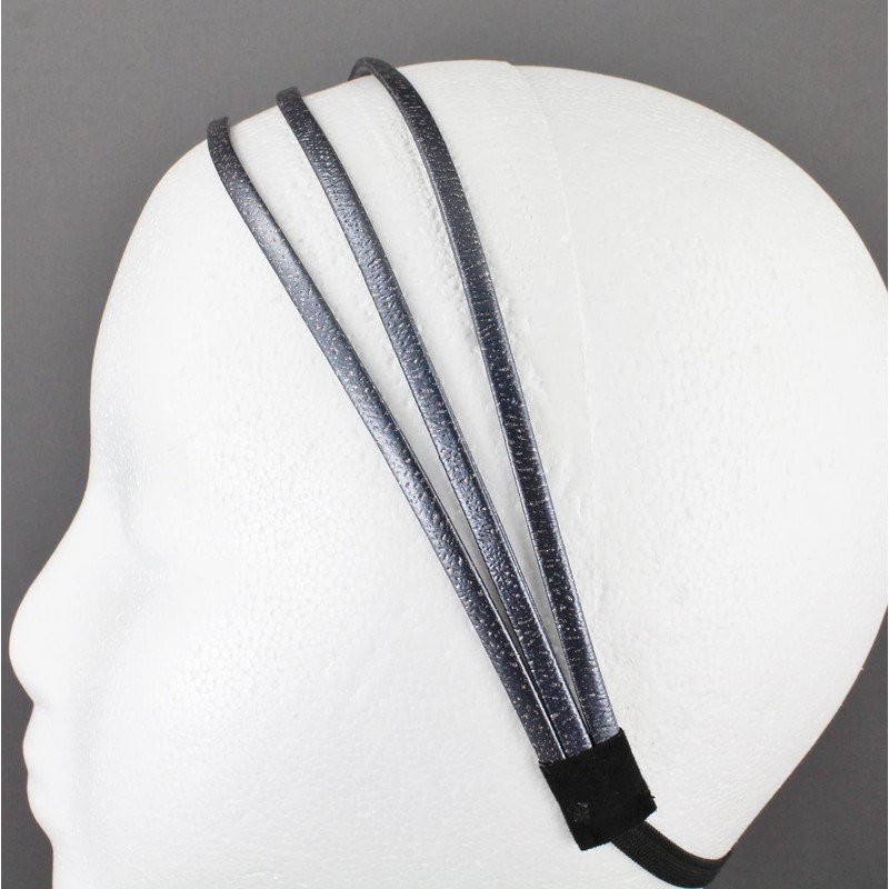 dark gray thin skinny triple 3-strand faux leather headband hair band narrow bands stretch
