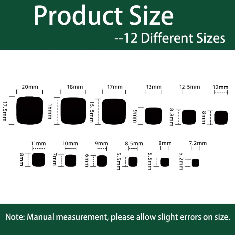 - DURABLE MATERIAL : Our square false toe nails are made from high quality ABS material,which is friendly environmental, safe and non-toxic and not easy to chip or break, which can cover your native nails very well. Giving you a comfortable manicure experience