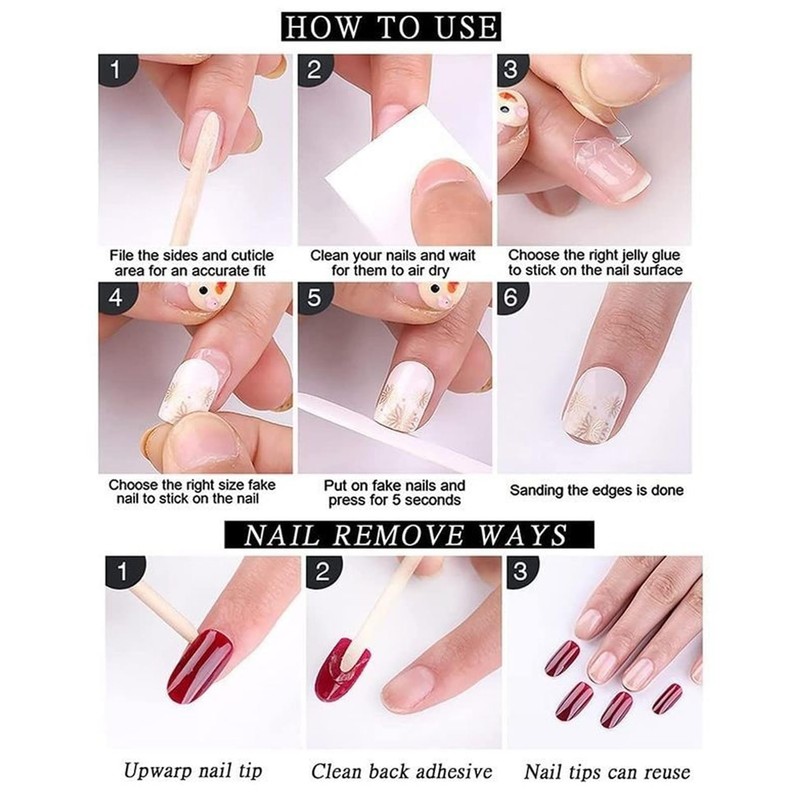 4. Safety on your natural nails, Non-toxic, environmental protection, do not hurt the hand.False nail trips without the dangerous chemical process