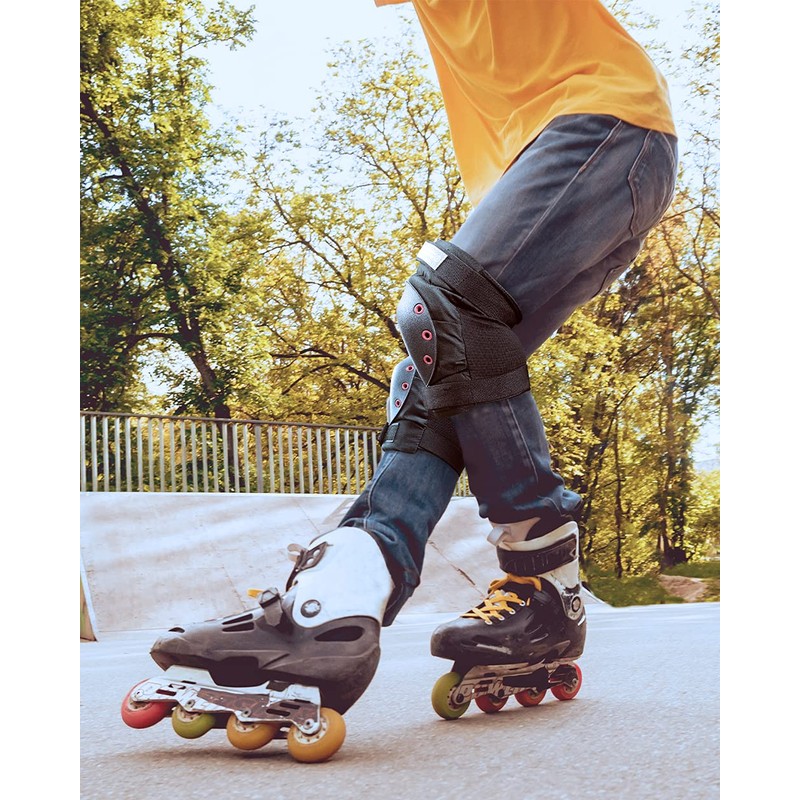 Dark Lightning Adult/Youth/Junior Knee Pads Elbow Pads Wrist Guards 3 in 1 Protective Gear, for Skateboard,Roller Skate,Inline,Cycling,MTB Bike,Scooter(PolarNight Black,M)