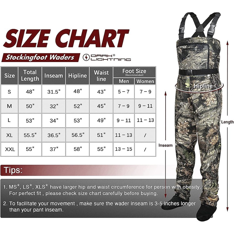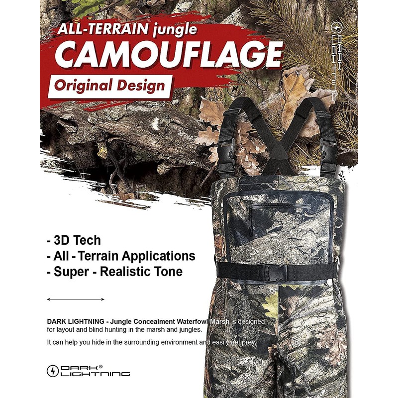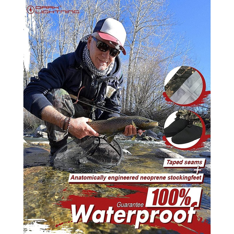 Dark Lightning Camo Breathable Insulated Chest Waders, fit for Men and Women, Perfect for 4 Seasons Fly Fishing Stocking Foot Waders (Camo, Large)