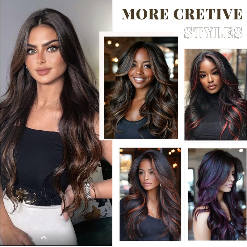 - dark purple highligh Layered Wig Premium Material: dark purple highligh Layered Cut Wigs Long Wavy Wig for Women,Made by high temperature resistant synthetic fibre,Soft,lightweight feel like your own hair Also easy to manage, not easy to tangle and hair loss,suitable for beginners